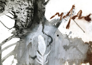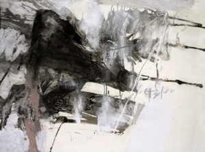 Bushfire metal residue, charcoal pigment and acrylic on canvas