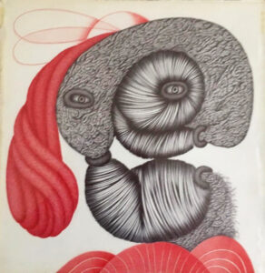 pencil, ink and goauche on reverse of found LP jacket