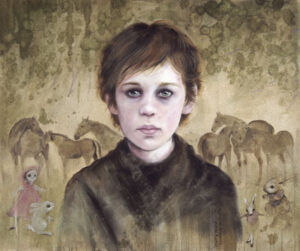watercolour and oil on canvas