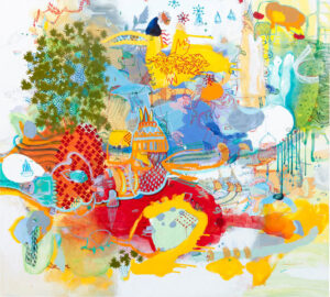 acrylic and spray paint on linen