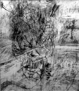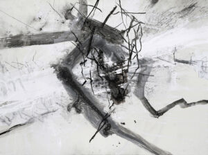 Bushfire metal residue, charcoal pigment, ash, oil and acrylic on canvas