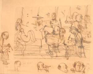 Editions that have been produced after John’s passing have a digital signature, please enquire with the gallery team for more information. Every work is blind embossed with a Kookaburra design drawn by John Olsen confirming their validity.