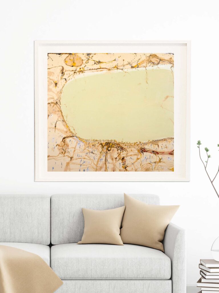 Limited edition fine art reproduction is hand signed by John Olsen. Every work is blind embossed with a frog design drawn and approved by Olsen, and is accompanied by a numbered Certificate of Authenticity.