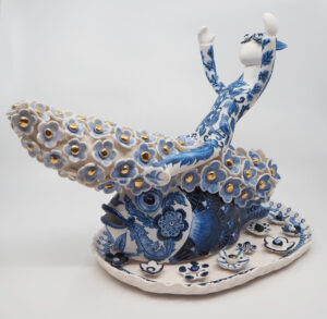 Porcelain, cobalt oxide, ceramic, white glaze, gold lustre