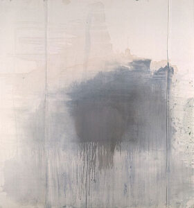 Abstraction in acrylic mediums carborundum chalk slate acrylic paint scraps three strips of raw cotton with stitching