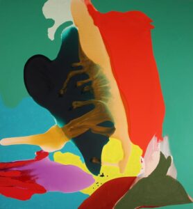 Abstraction in oil alkyd resin copper powder resin slate dust marble dust phlogopite glimmer yellow wax on oil primed linen