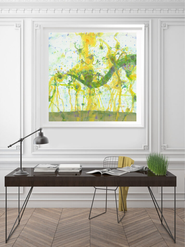 Limited edition fine art reproduction print, hand sized, titled and editioned by the Artist. Editions that have been produced after John’s passing have a digital signature, please enquire with the gallery team for more information. Every work is blind embossed with a Kookaburra design drawn by John Olsen confirming their validity.