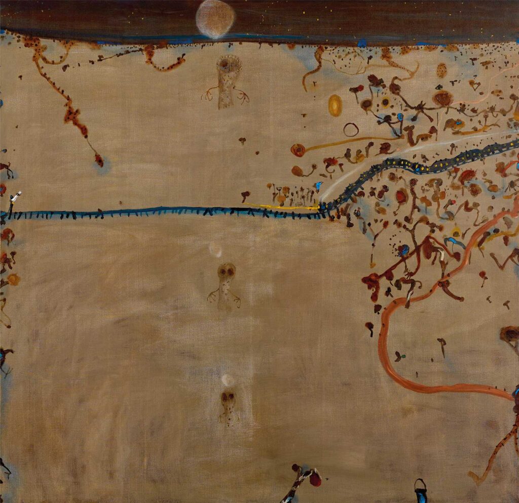Limited edition fine art reproduction print, hand sized, titled and editioned by the Artist. Editions that have been produced after John’s passing have a digital signature, please enquire with the gallery team for more information. Every work is blind embossed with a Kookaburra design drawn by John Olsen confirming their validity.