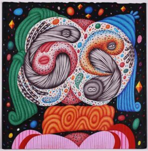 pencil, ink and coloured pencil on found LP jacket