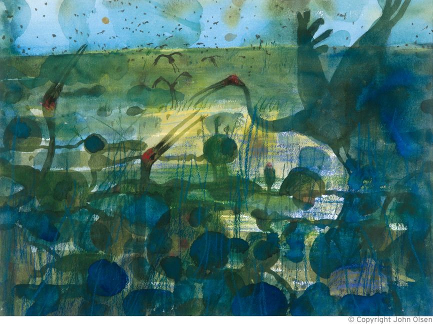 Limited edition fine art reproduction print, hand sized, titled and editioned by the Artist. Editions that have been produced after John’s passing have a digital signature, please enquire with the gallery team for more information. Every work is blind embossed with a Kookaburra design drawn by John Olsen confirming their validity.