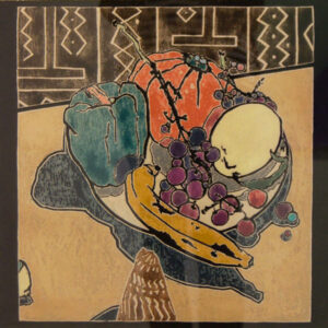 Watercolour on engraved plywood