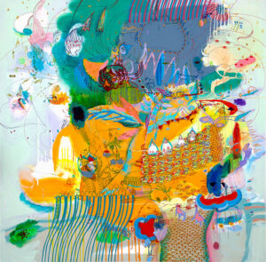 acrylic and spray paint on linen
