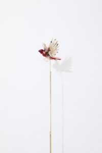 brass, cotton rag, fur, watercolor, spray paint