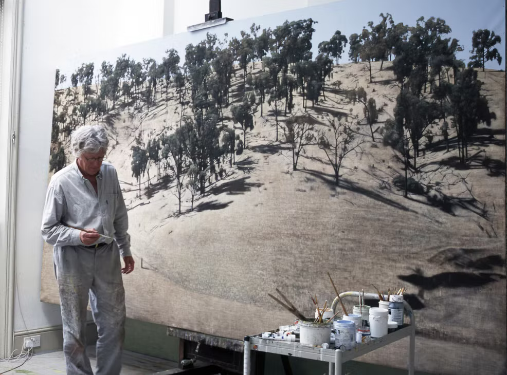 A closer look at the work of William (Bill) Delafield Cook (b. 1936) reveals at once his overlapping interests in the history of art, photography and the Australian environment. How one informs the other in the late artist’s work is carefully obfuscated by the almost-too-real elements of his orderly pastoral scenes. The impossible stillness that Delafield Cook achieves agitates the composure of his chosen scapes, bringing the makerly apparatus (painting) to the fore.