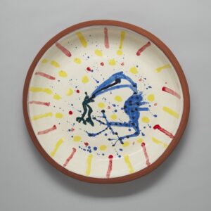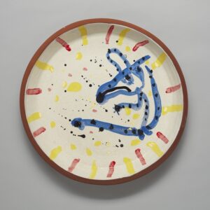 Yellow woman plate 2025 © Stephen Bird glazed earthenware 32 x 27 cm ##38210 $1,700