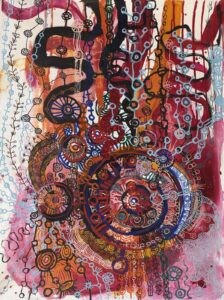 Frog Spawn 2019 © John Olsen mixed media on paper 80 x 90 cm ##25987 $65,000